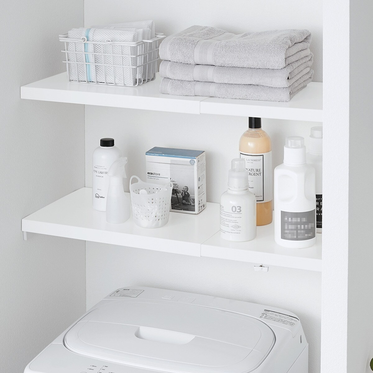 ●フラットな棚になるので、細かい小物からボトルなどの不安定なものもしっかり置くことができます