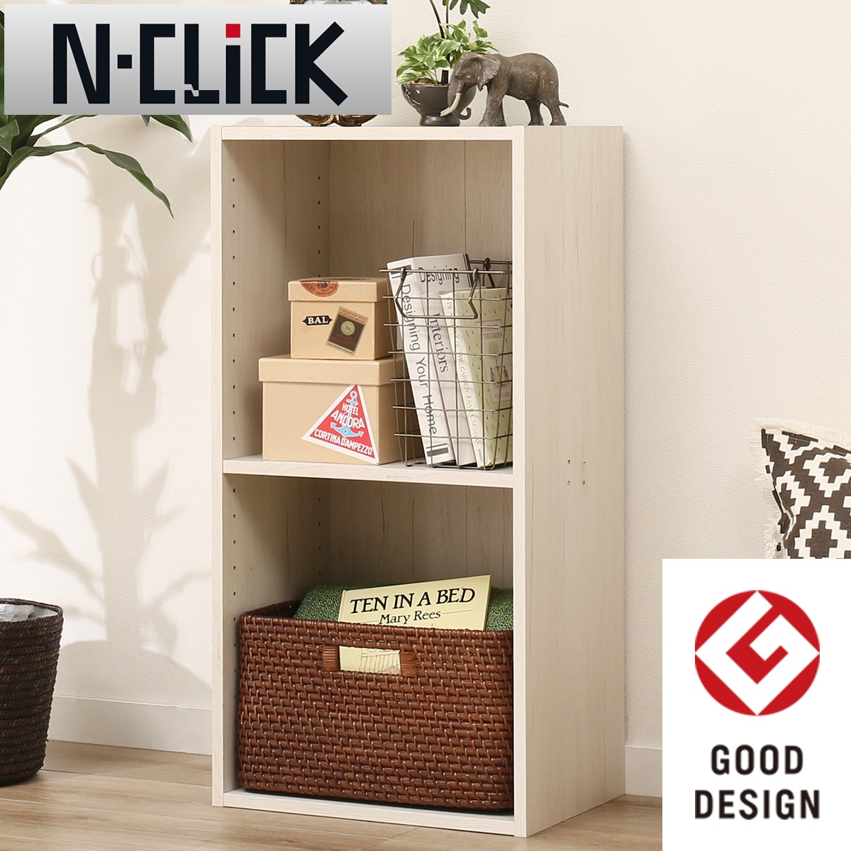 簡単組立て カラーボックス Nクリック ボックス レギュラー2段(ホワイトウォッシュ) ラック 棚 シェルフ ニトリ