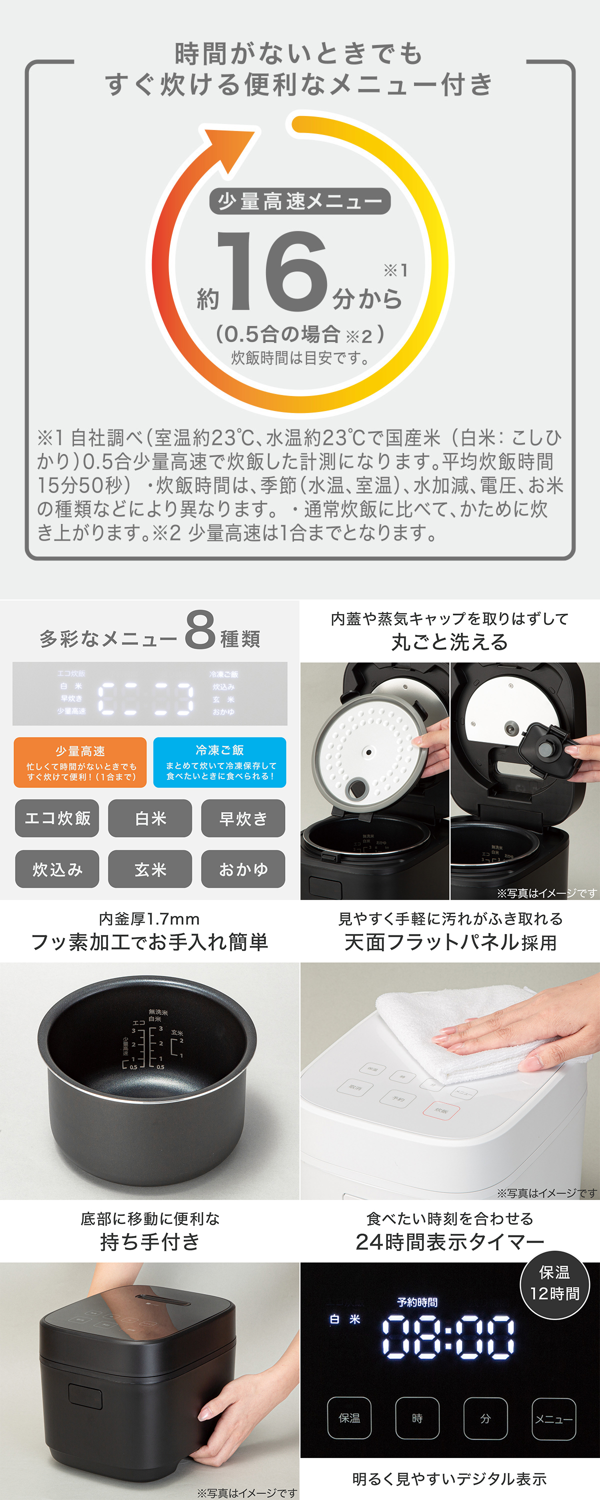 ※白米・早炊き・少量高速・冷凍ご飯・エコ炊飯・炊込み・おかゆ・玄米
