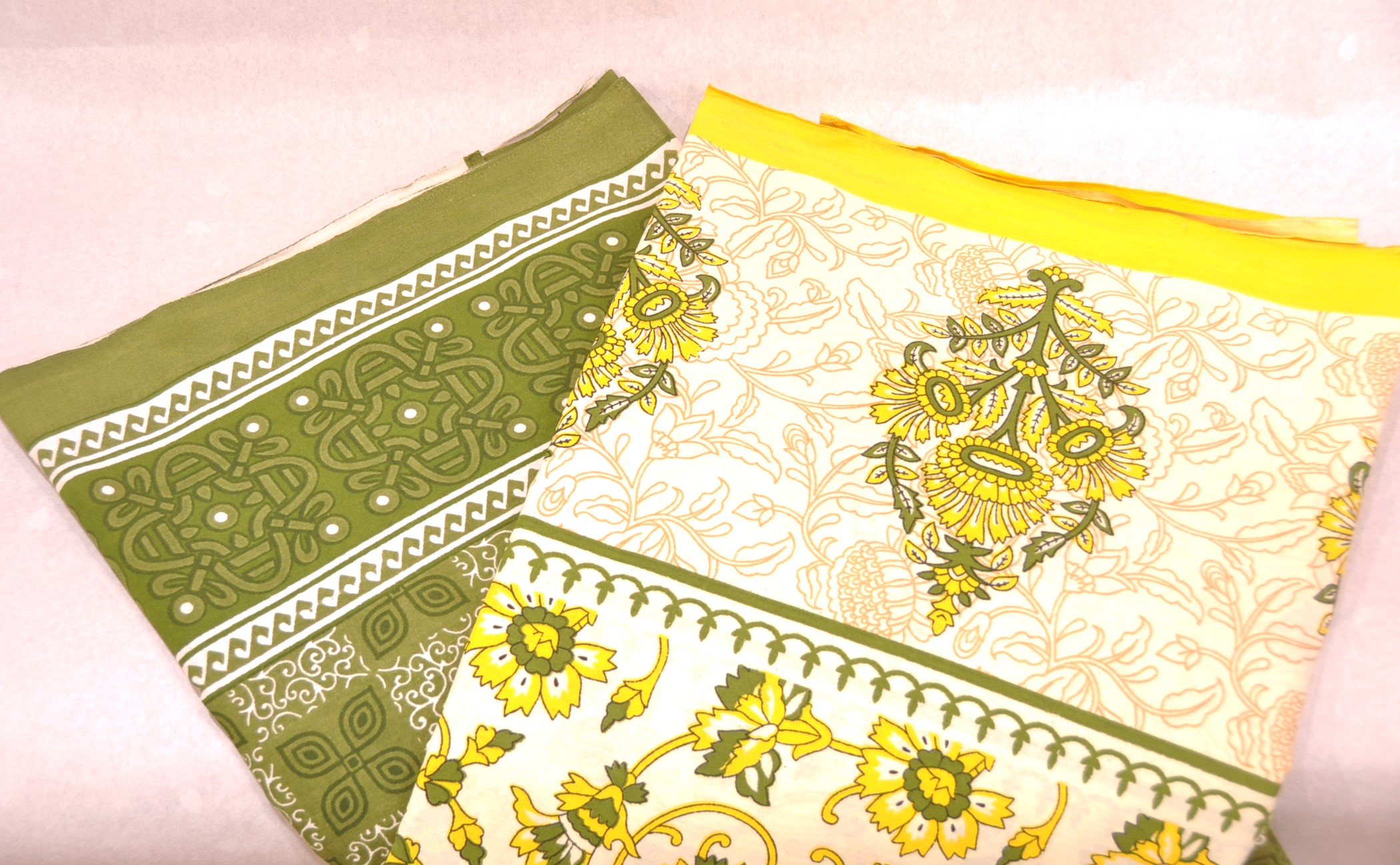 新品汚れあり 黄色or緑 インド綿 100% マルチカバー 220 x 260cm ダブルベッドカバー サイズ 綿 コットン 輸入品 ソファーカバー 特大布地
