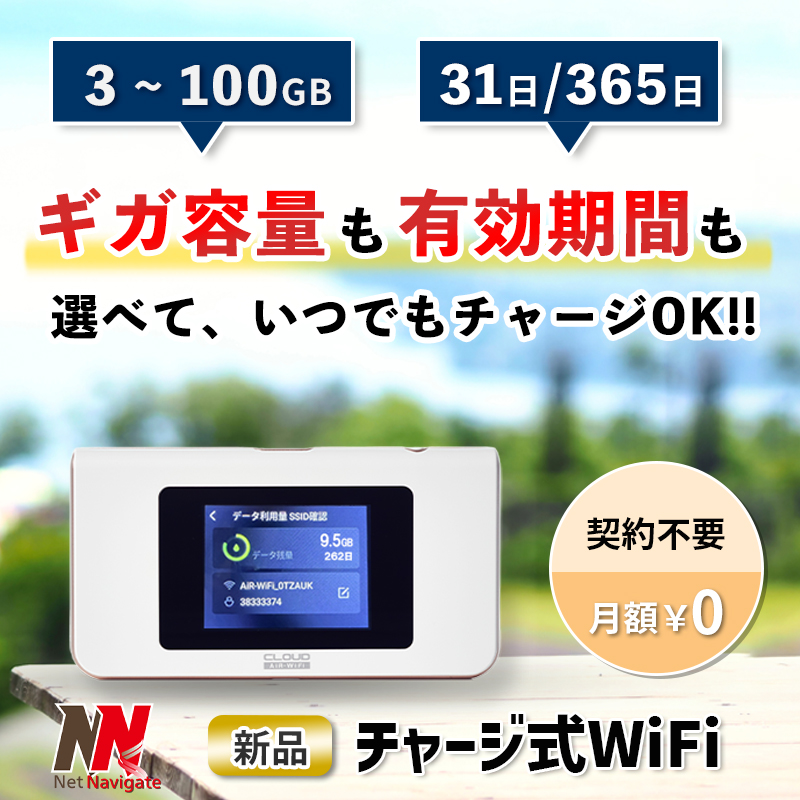 チャージWiFi チャージ式 リチャージ プリペイド モバイルルーター 買い切り 契約不要 返却不要 月額0円 ギガチャージ 有効期限 31日 AIR-1 ネットナビゲート