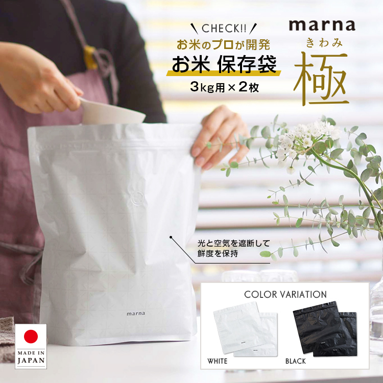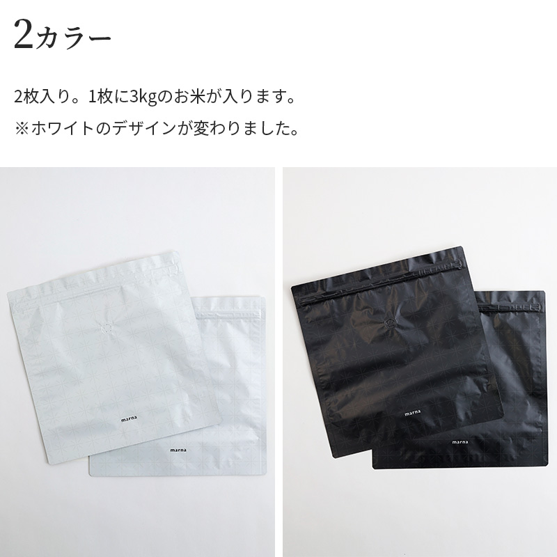 マーナ お米 保存袋 保存容器 米びつ 米袋 3kg用x2枚 白 黒 日本製 おしゃれ コンパクト 食品 鮮度保持 K737
