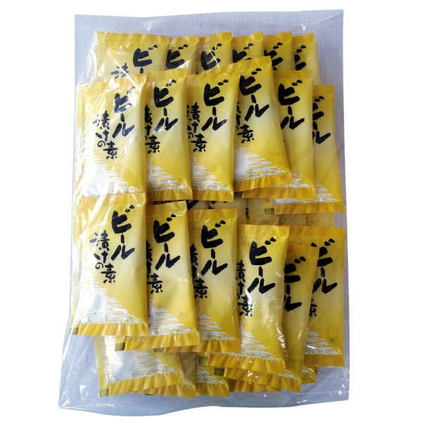 ビールを加えて作る粉末タイプの漬け物の素です。約一日漬けるだけで、甘くてビールのほろ苦い風味がほのかに香るおつまみやおかずとしても美味しい漬け物が出来上がります。北海道産昆布で味に深みを加え、唐辛子でピリッと味を引き締めています。繊維分解酵素を入れているため、野菜に味が浸透しやすくなっています。また、分包タイプで使い切りができ、場所も要らず経済的で臭気や手の汚れもありません。