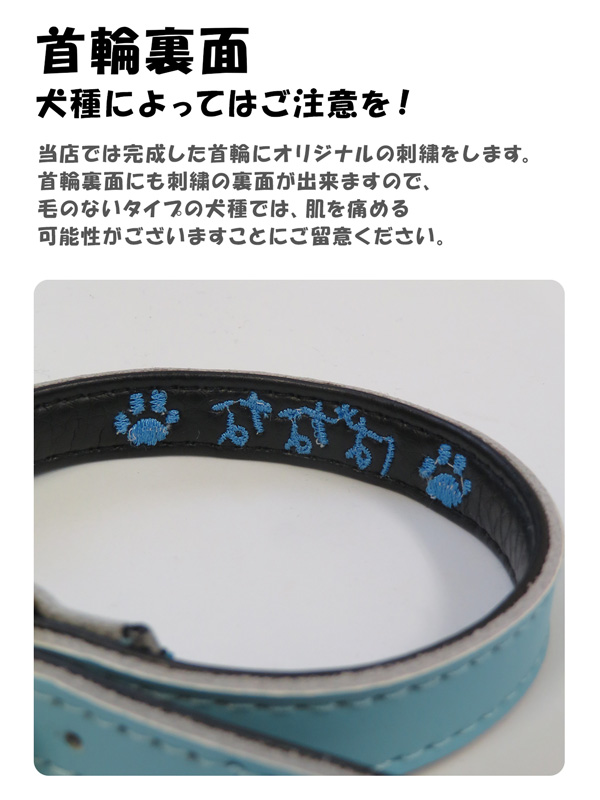 人気のヒミツはデザインがシンプルでどんな犬種にもマッチする、色が豊富で刺繍糸やフォントも自由に選えらべるという事。リピーターの皆さまは『今度はどれにしてみようかな?』と、色・刺繍・フォントの組み合わせを変えてオリジナル感を楽しまれています。