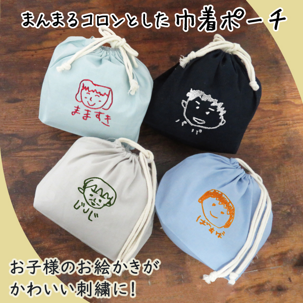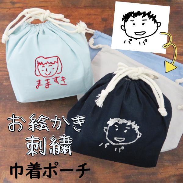 巾着 ポーチ 小物入れ 子供の絵巾着 オリジナル巾着 子供の絵 オリジナルグッツ 刺繍 プレゼント子供の絵 似顔絵 お絵描き