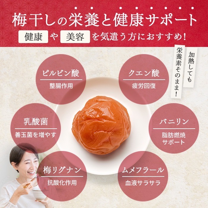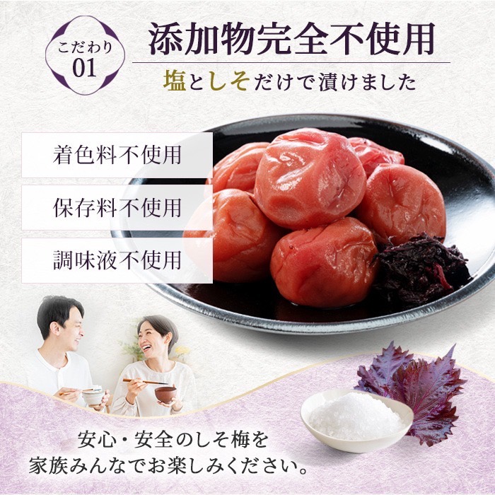 素材本来の味を大切に、化学調味料・保存料を一切使用していない梅干しです。
