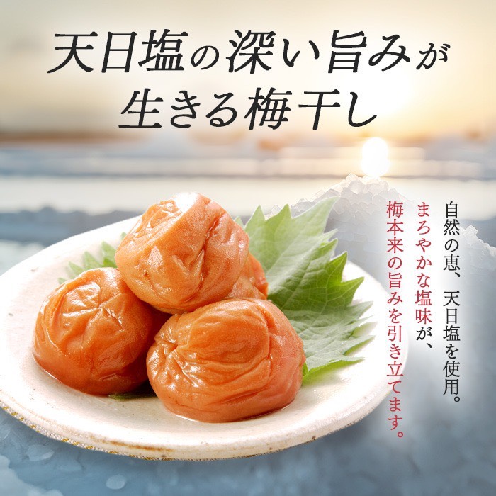 塩だけで仕上げた昔ながらの梅干し。梅の酸味と塩味をそのまま楽しめます。