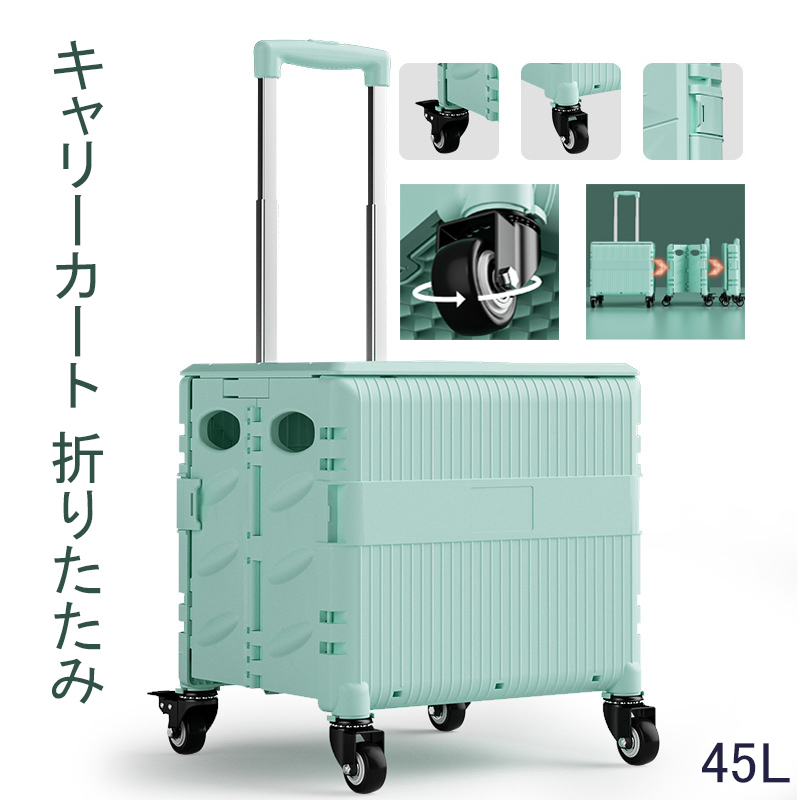 キャリーカート 折りたたみ ショッピングカート キャンプ キャスター付 フタ付 4輪 3階段 容量45L 耐荷重50kg 買い物 台車 軽量 便利 防災 アウトドア 荷物