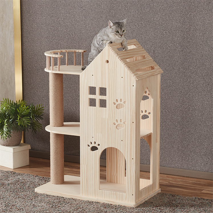 キャットハウス キャットタワー BC 木製 猫タワー 超大型 多頭飼い 大型猫 木登り 爪とぎ 見晴らし台 運動不足解消 天然サイザル麻紐 登り降りしやすい 安定松木
