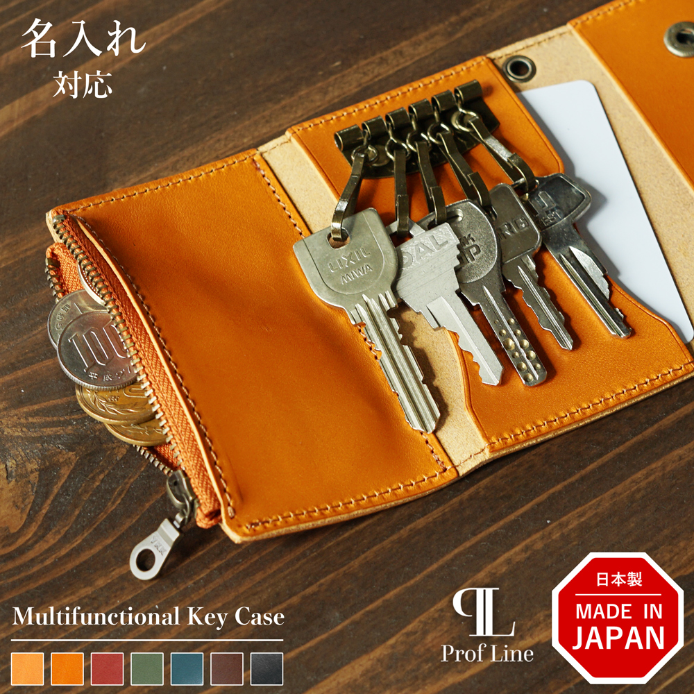 5連フックとカードポケット1つ、小銭やちょっとした小物を入れられるファスナーポケットがついた便利なキーケース。