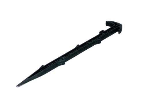 ・畝の両側の土中に本品を1〜2m間隔で差し込み、バンド(又は紐)を引っ掛けながらビニール、ポリフィルムを固定します。