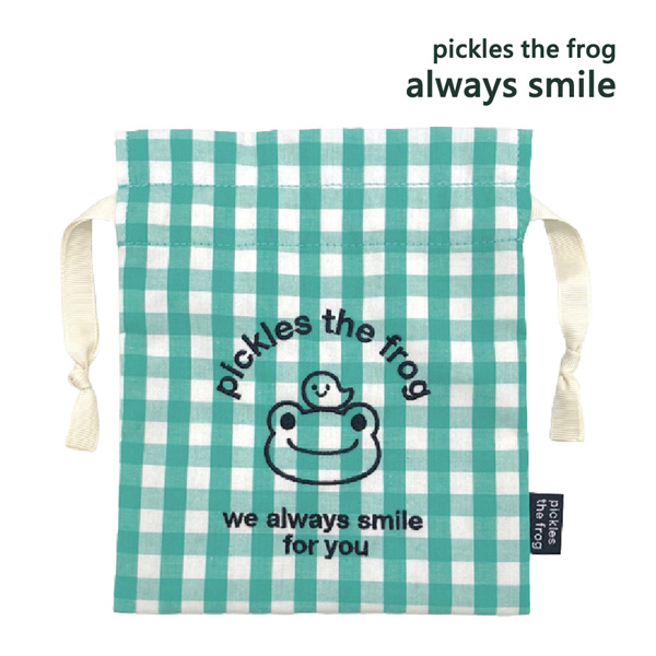 【セール☆4】192479-24 かえるの ピクルス always smile ギンガム 巾着 収納 小物入れ コップ袋 pickles the frog