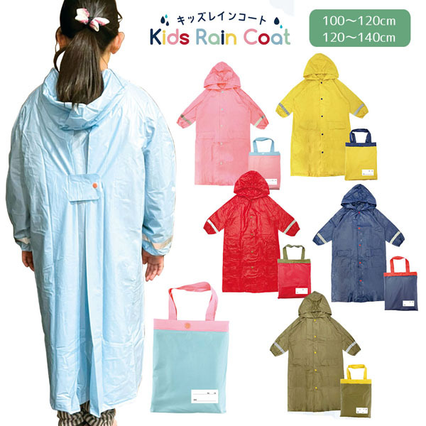 【ネコポス便発送可】キッズ レインコート 86301-16 女の子 男の子 通学 カッパ 背面 ランドセル 反射板 安全 リフレクター