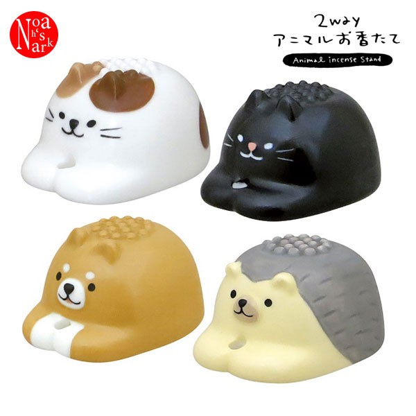 みけねこ・くろねこ・しばいぬ・はりねずみの4種類。揃えて「2WAYアニマルお香たて」シリーズをコレクションしちゃいましょう。◎