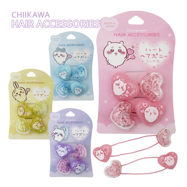 【ネコポス便発送可】CW01840-43 ハートヘアーポニー2P ちいかわ ハチワレ うさぎ モモンガ 髪留め ファッション 子供 キッズ アクセサリー 髪 ヘアー 雑貨