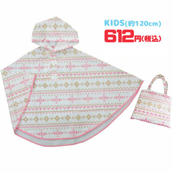【ネコポス便発送可】98721S ジップコーポレーション レインポンチョ キッズ(キリム・ライトピンク) 子供 通園 通学 雨 レインコート