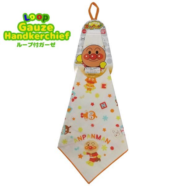 【ネコポス便発送可】アンパンマン 29301 ループ付きガーゼハンカチ あんぱんまん 約30×30cm 名前ネーム付 入園 入学 服飾 子供 キッズ 通園 綿 コットン