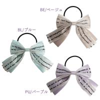 【ネコポス便発送可】PYK-2272-BE コンチョポニー 英文リボン ベージュ ブルー パープル ヘヤーアクセサリー 髪留め WILL ファッション おしゃれ まとめ髪