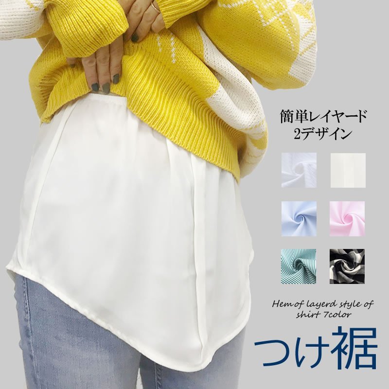 レイヤードシャツ レイヤード風 つけ裾 付け裾 シフォン付け裾 重ね着風 インナー つけシャツ シフォン コットン 無地 ゆったり 着回し ウエストゴム