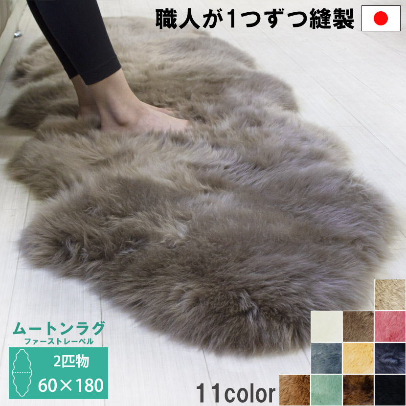 ラグ ムートンラグ ムートンフリース AUSKIN ファーストレーベル2匹物 60×180 長毛タイプ