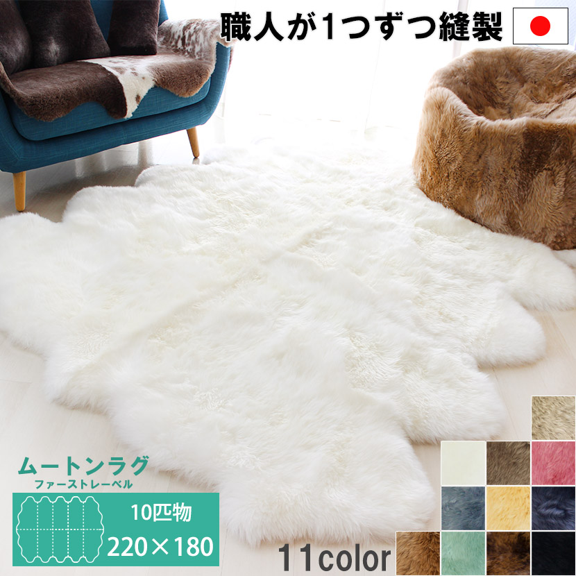 ラグ ムートンラグ ムートンフリース AUSKIN ファーストレーベル10匹物 220×180 長毛タイプ