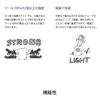 ソフトな風合い、蒸れにくく臭いにくいという本来のウールの特徴を最大限に活かしつつ、強度や速乾性、ストレッチをプラスし、毛玉ができにくく丈夫で長持ち。