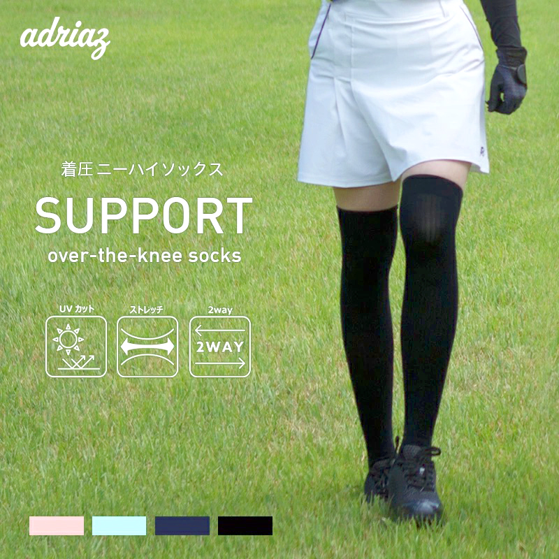 ゴルフ レディス 加圧 美脚 ハイソックス 2Way アドリアズ AdriaZ 靴下 ニーハイ ゴルフソックス ゴルフウエア シンプル 疲れにくい サポート機能 段階着圧