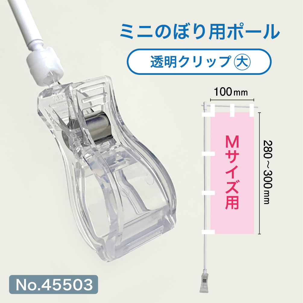 ミニのぼり用ポール (Mサイズ用) 白パイプ+透明クリップ(大) [No.45503]
