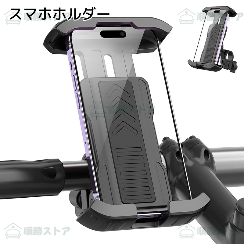 スマホホルダー バイク 自転車 360度回転 4.7〜6.8インチ 縦置き 横置き スマホ ホルダー スタンド 携帯ホルダー 軽量 振れ止め 自動ロック 着脱簡単 落下防止