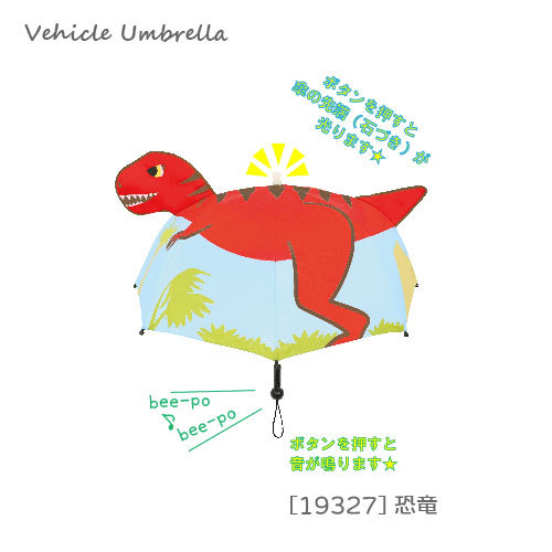 [J19362]Vehicle Umbrella 乗り物傘 恐竜 ダイナソー レックス 傘 かわいい 可愛い かさ 子供 音が鳴る 先端が光る 透明部分 47cm 働く車 送料無料