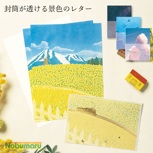 メール便 対象商品3,000円以上ご購入で送料無料/封筒が透ける景色のレター 1セット 金箔押し トレーシングペーパー 文具 雑貨 まとめ買い 包む