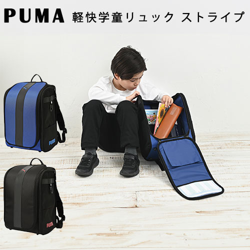 【送料無料】PM529 PUMA 軽快学童リュックストライプ ランドセル ブルー ブラック ランリュック プーマ 入学 通学 小学生 入学祝い