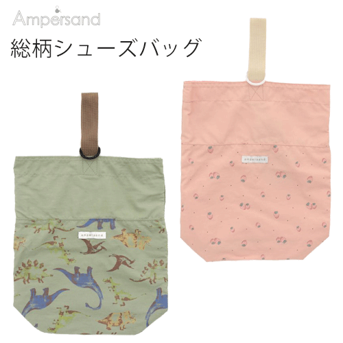【メール便送料無料】Ampersand 総柄シューズバック L166103 上履き 苺 恐竜 収納 布製 小学生 男の子 女の子 防水シート入り 入学準備 プレゼント