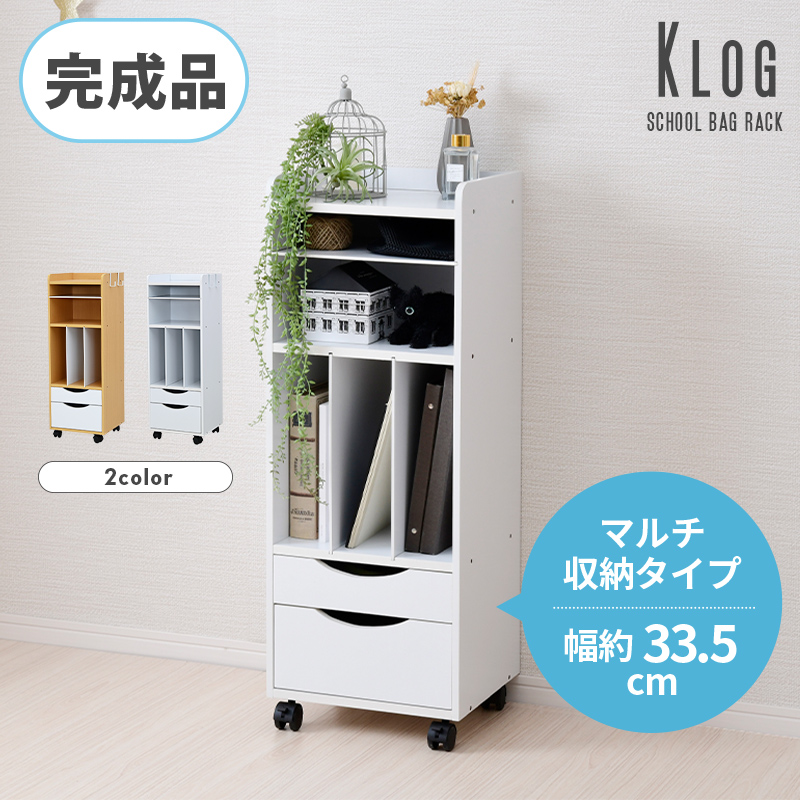 ランドセルラック 完成品 引き出し 収納 本棚 木製 幅33 白 ホワイト スリム キャスター付き おしゃれ