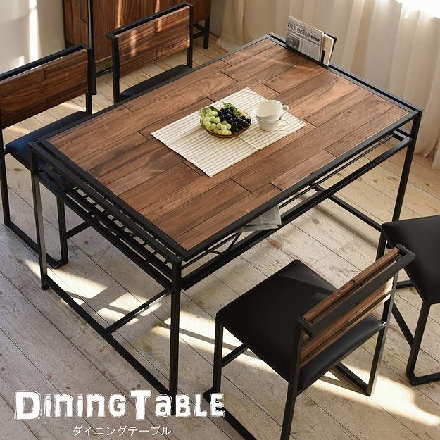 アイアン×天然木 ダイニングテーブル 幅120 棚付き / レトロ おしゃれ m1