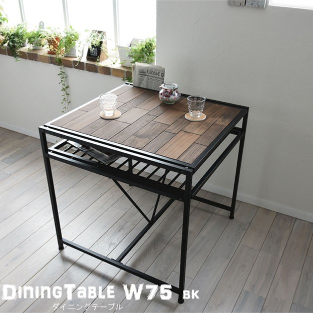 【キーワード】 天然木 アイアン オシャレ ダイニングテーブル 幅75 2人用 おしゃれ 北欧 レトロ 無垢 アンティーク 木製 アイアン ブラック モダン モザイク 棚付き 激安 安い 格安
