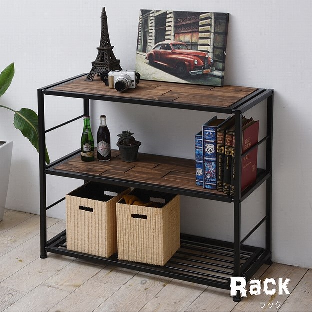 【キーワード】天然木 3段ラック 幅90 オープンラック おしゃれ 木製 アイアン 棚 3段 シェルフ アンティーク ヴィンテージ レトロ 安い モダン 北欧 無垢 ナチュラル