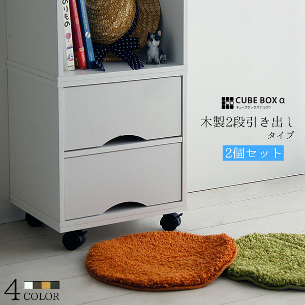 【!】この商品はキューブボックスα 木製2段引き出しの2個セットです。