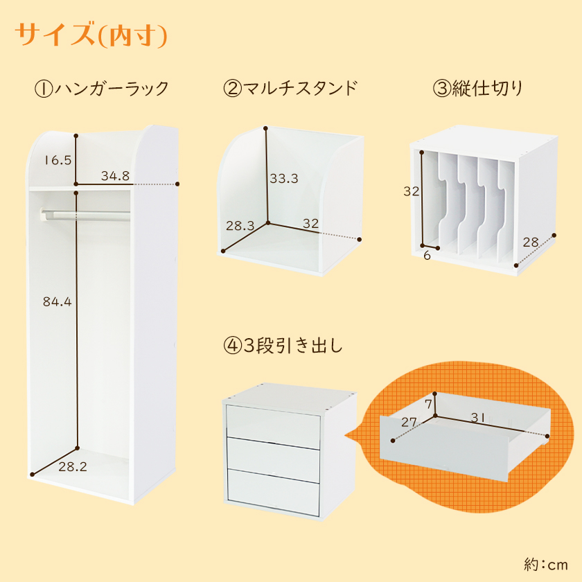 幅32cm×高さ32cm(仕切り間隔6cm)×奥行28cm