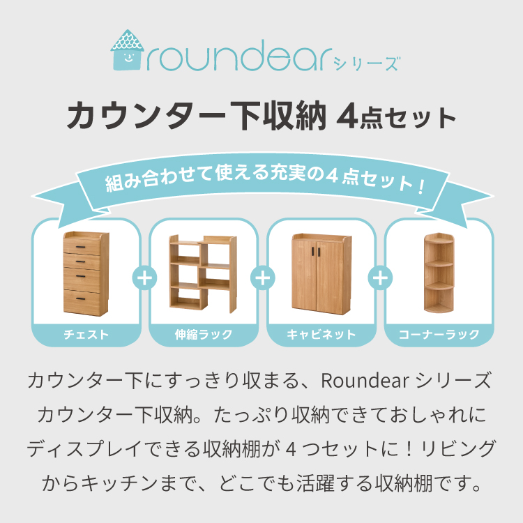 カウンター下収納 4点 セット キャビネット チェスト 伸縮ラック コーナーラック ロータイプ おしゃれ