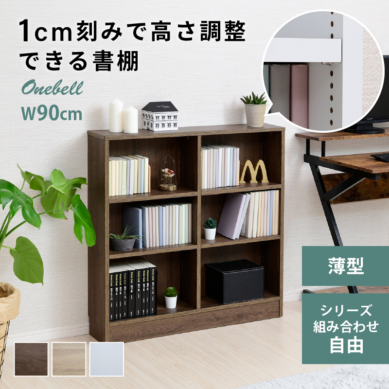 Onebell 書棚 本棚 スリム 浅型 幅90cm 大容量 おしゃれ 1cmピッチ 収納棚 オープンラック ラック 棚 シェルフ コミックラック コミック収納