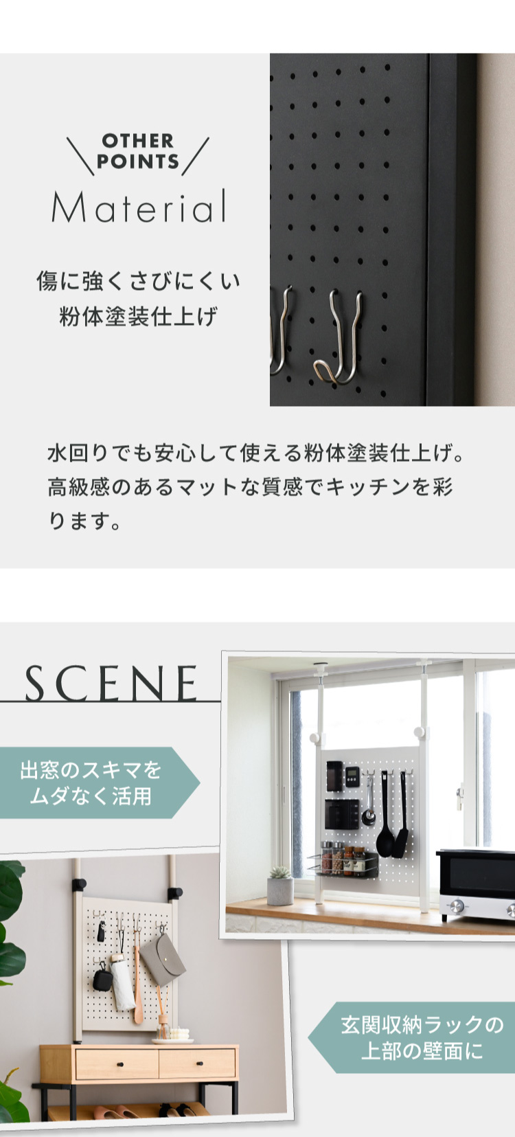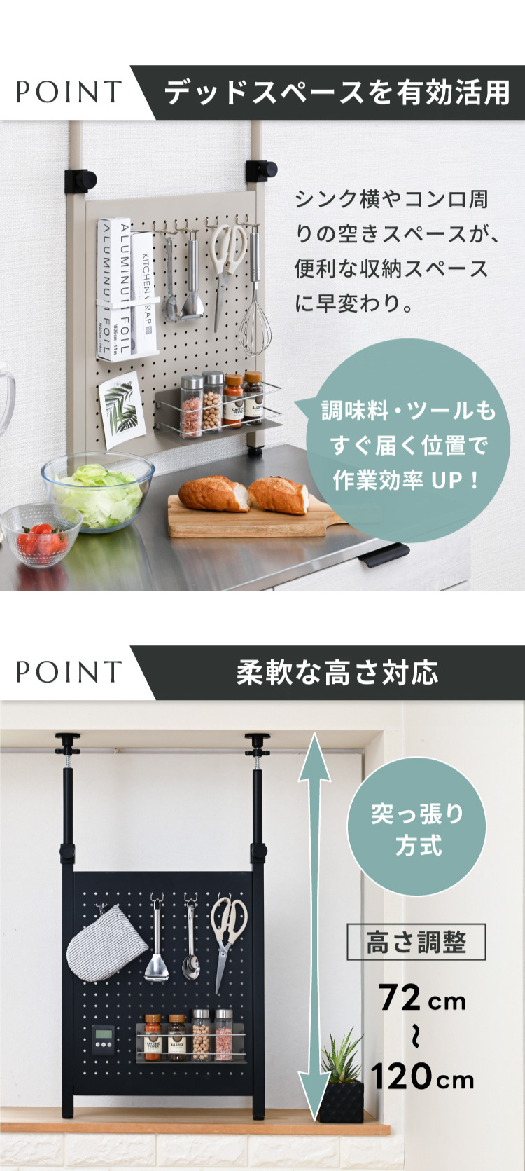 | 商品名 | Trus 突っ張りキッチンラック パンチングパネルタイプ W45 |