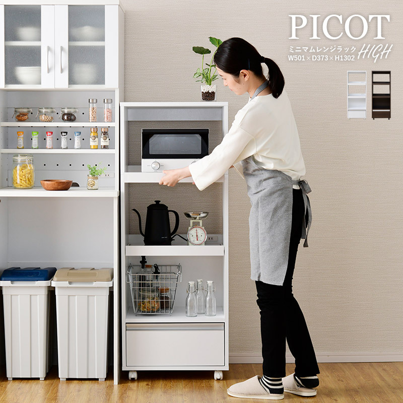 キッチンラック スリム 幅50 ミニ レンジ台 3段 キャスター 木製 キッチン収納 炊飯器ラック コンセント付き レンジラック キッチンワゴン