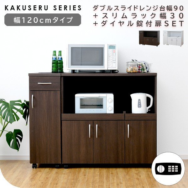 ■ダブルスライドレンジ台幅90+スリムラック幅30+ダイヤル錠付扉SET■