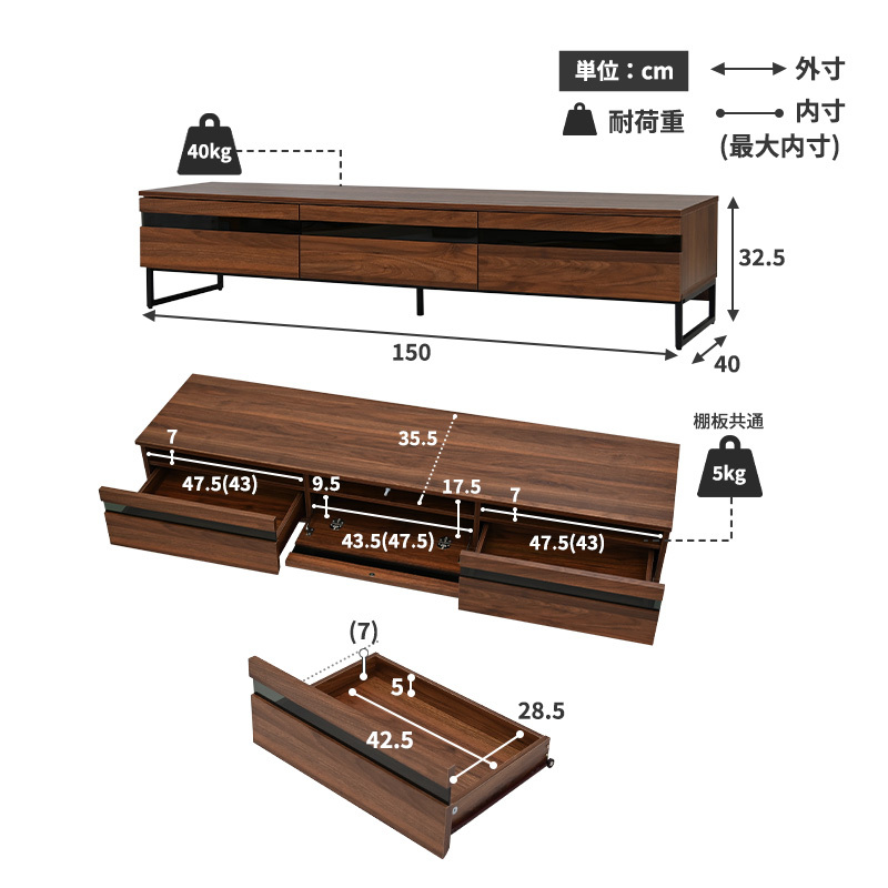 ◆本体外寸:幅約150×奥行約40×高さ約32.5cm