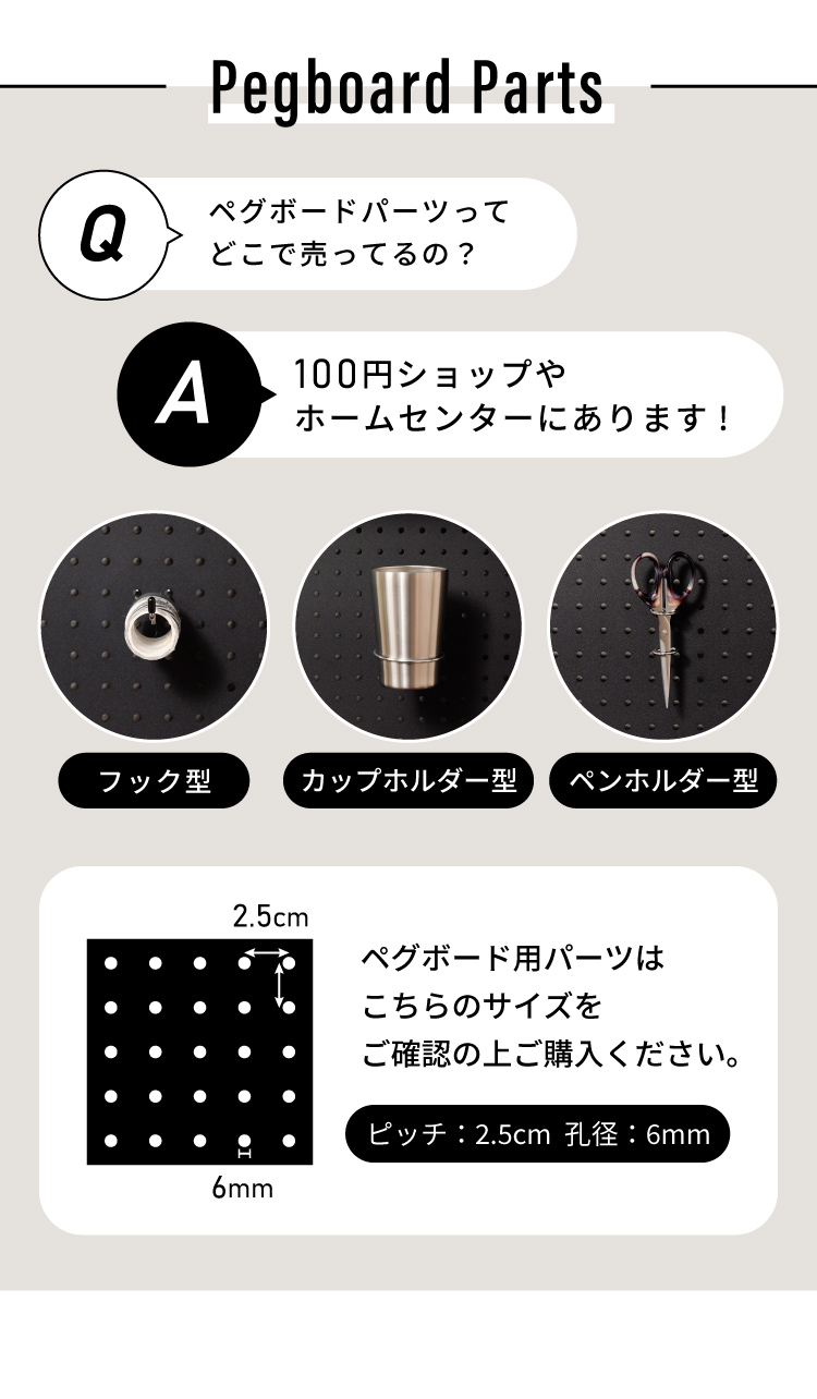 ◆ペグボード:幅約87×高さ約29.5cm/φ6 2.5cmピッチ