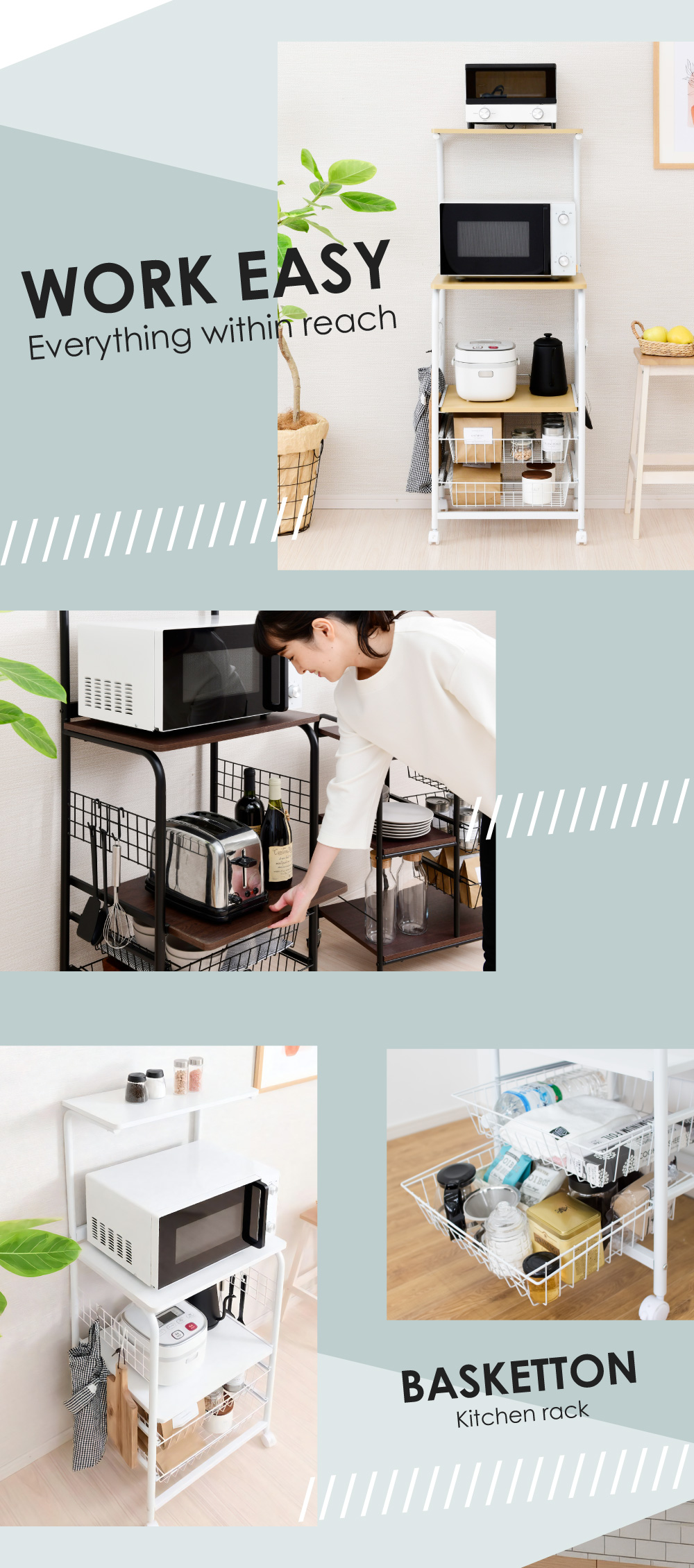 【商品名】BASKETTON キャスター付き レンジラック 幅50cm