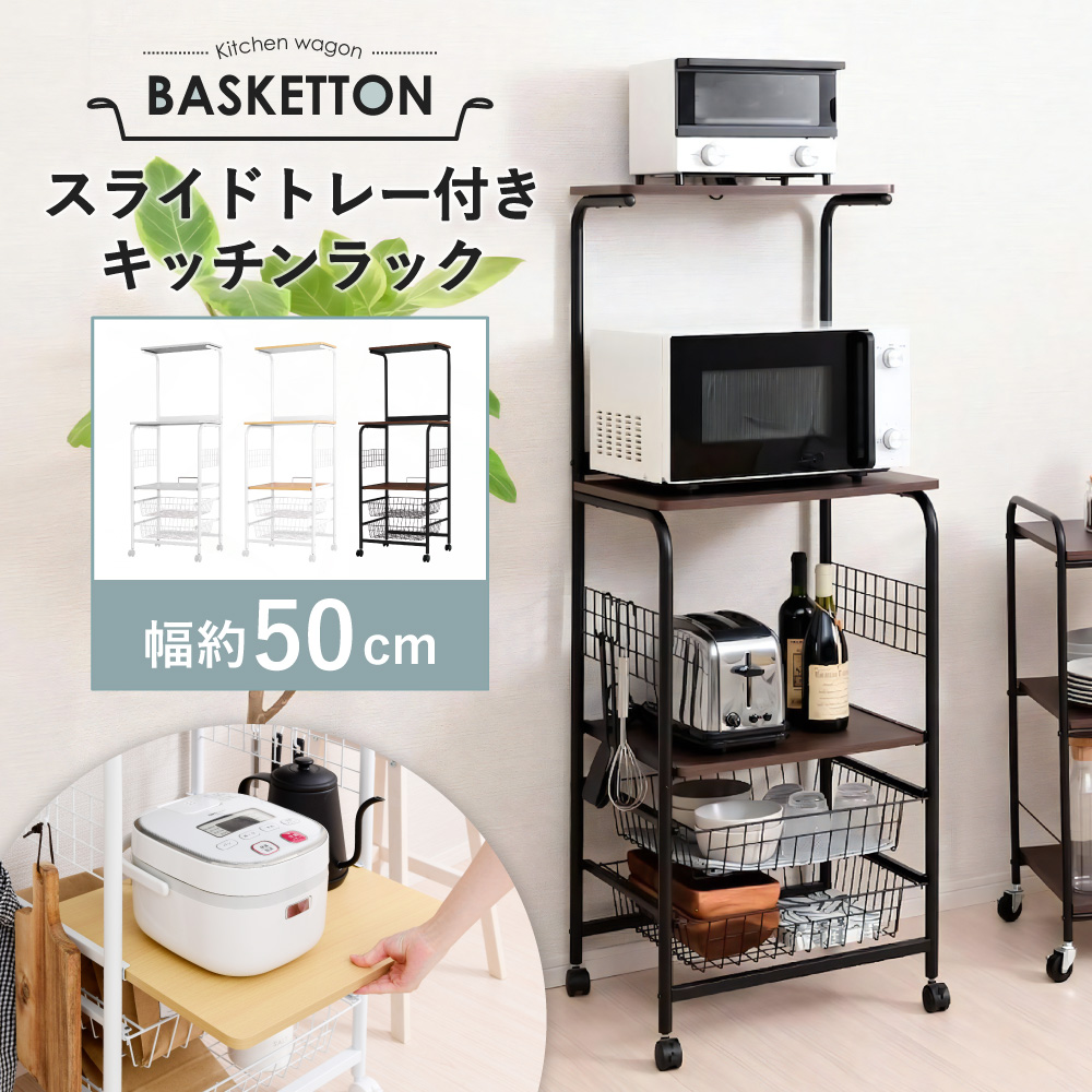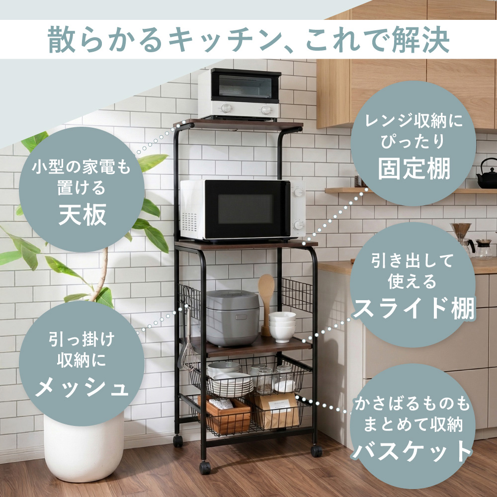 レンジラック レンジ台 幅50 ハイタイプ 一人暮らし 安い キッチン 棚 トースターラック キッチンラック 棚 キャスター付き Basketton