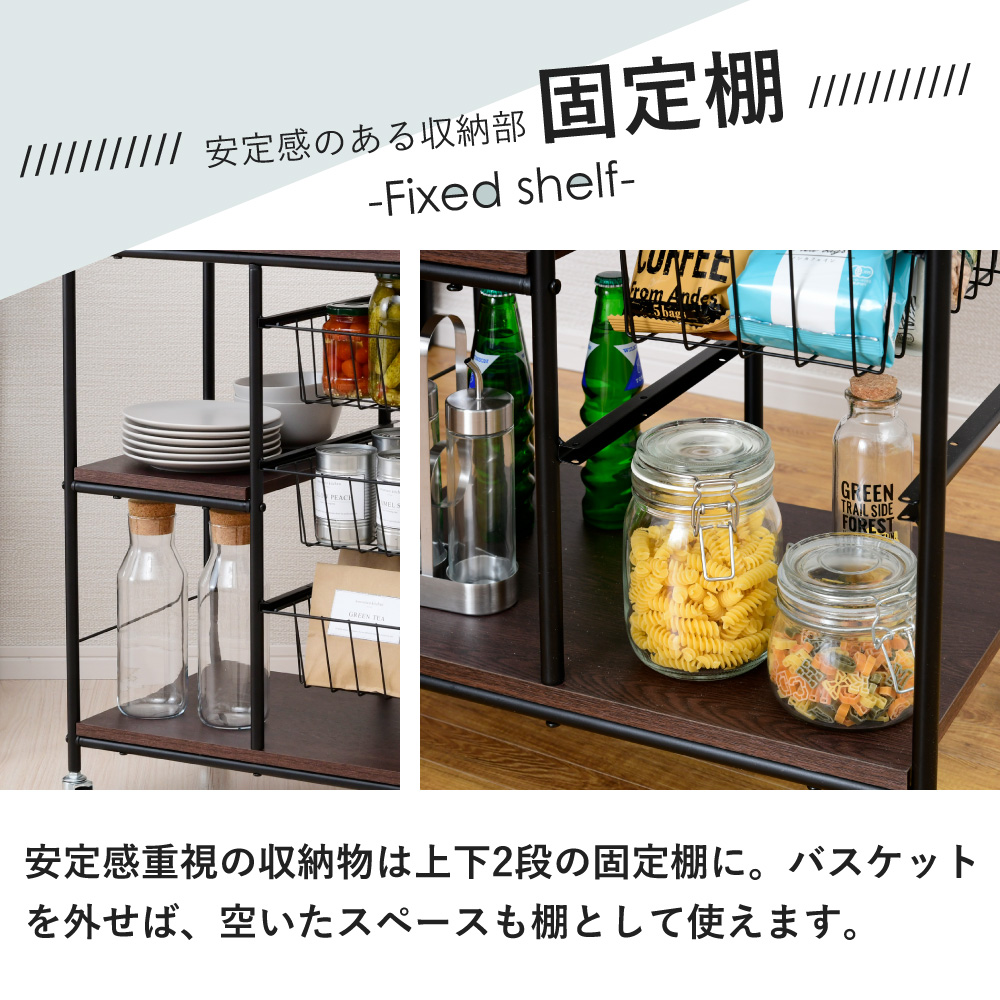 キャスター付きワゴン キッチンワゴン キャスター付き おしゃれ スリム 収納 バスケットトローリー 2段 3段 作業台 炊飯器 キッチンラック 北欧
