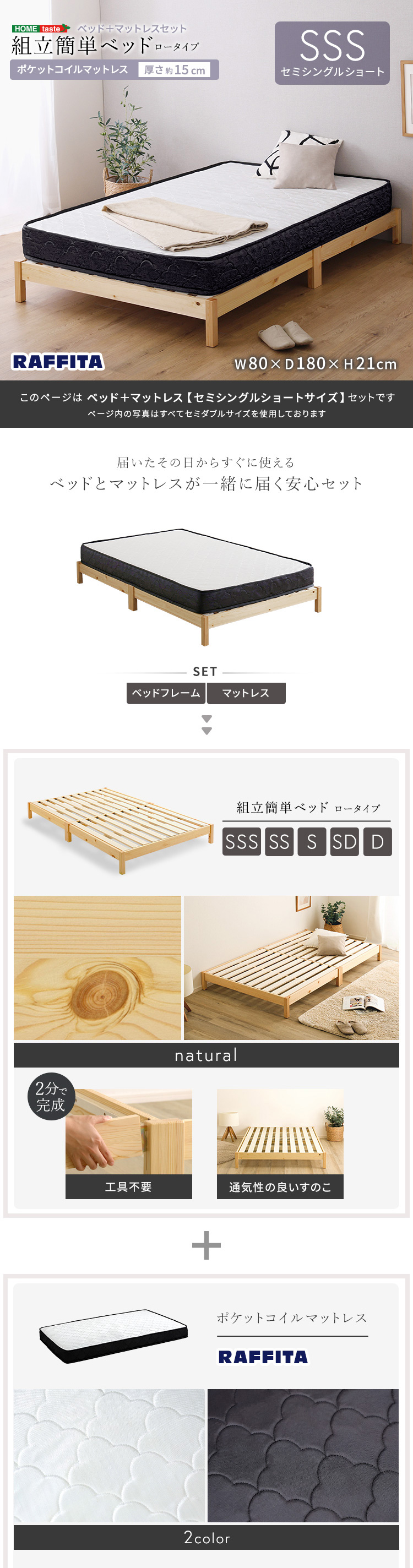 2分で完成 組立簡単ベッド ボンネルコイル マットレス付き ダブル ロータイプ 木製 すのこベッド 宮無し 脚付きベッド シンプル ダブルベッド